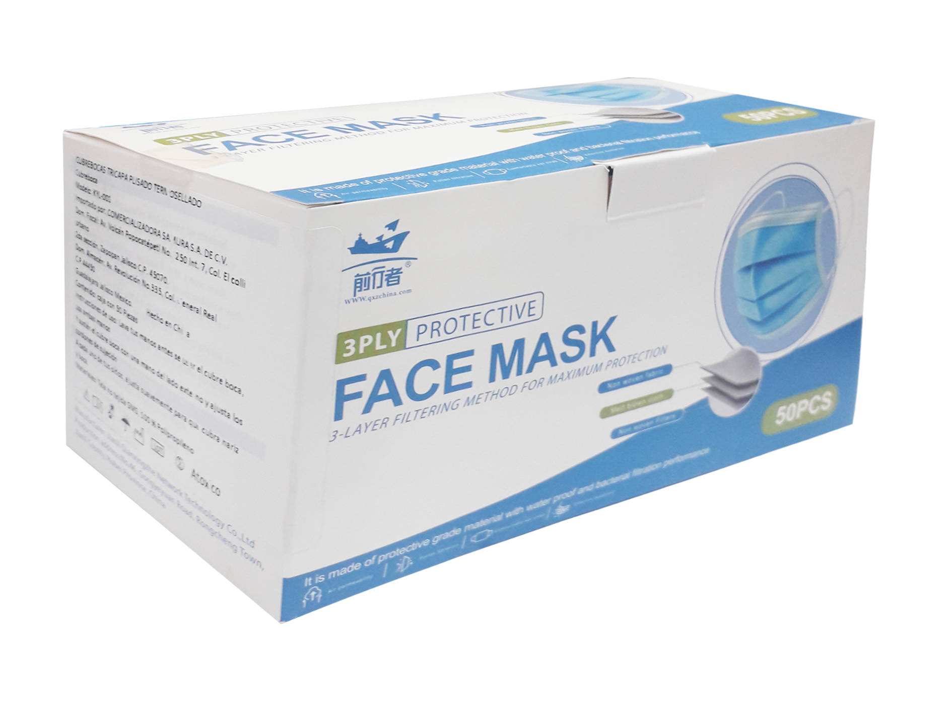 CUBREBOCAS TRICAPA AZUL FACE MASK C/50